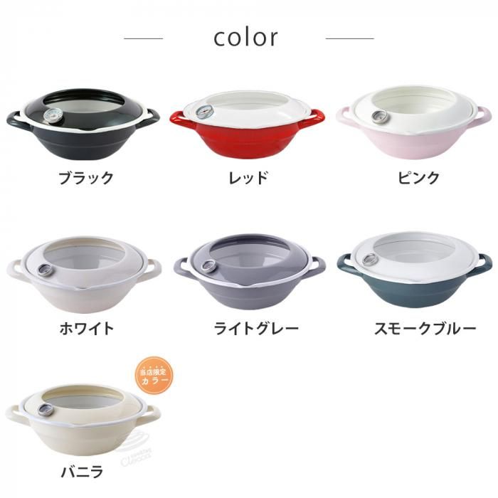 富士ホーロー 天ぷら鍋 24cm TP-24 送料無料 当日出荷 分類で探す キッチングッズ 鍋 天ぷら鍋 ブランドで探す 富士ホーロー 特集ページ 冬を楽しむ特集 鍋 特集ページ ホーロー製品特集 当店オリジナル 特集ページ 新生活に揃えたい おすすめ商品 キッチン 価格帯(税込) 4,000円台の商品 キッチン用品 送料無料 ラッピング承ります 新色のスモークブルー入荷 ホーロー製で汚れが落ちやすく油がはねにくい構造のおしゃれでかわいい天ぷら鍋 卓上で串揚げ等にもおすすめ 防水の温度計付きでさらに便利に 10000002 メーカー希望小売価格5,500円(税込) 4,400円(税込) 0円 在庫入荷待ちブラック4,400円(税込)4,400円(税込)レッド4,400円(税込)4,400円(税込)ピンク4,400円(税込)4,400円(税込)ホワイト4,400円(税込)4,400円(税込)ライトグレー4,400円(税込)在庫なし4,400円(税込)スモークブルー4,400円(税込)4,400円(税込) 数量 カートに入れる 製品について性能詳細お買い物ガイドクロッカについて 温度計、油はねガード付きの琺瑯製天ぷら鍋 ホーロー製なので汚れが落ちやすく油がはねにくい構造のおしゃれでかわいいてんぷら鍋。卓上での串揚げ等にもおすすめ。IH調理器の揚げ物モードを使用しなければ、IH200Vにも使えます。温度計が防水仕様となり、汚れても水洗いが可能になりさらに便利になりました。 レッドとピンクはネット限定カラー。バニラとライトグレーは当店オリジナルカラーです。オイルポットとカラーを合わせると揚げ物がさらに楽しくなりそう。 サイズ(約)「本体+取っ手」32 × 「最大径」26.5 × 「高さ」10.5cm 重量約1220g 満水容量満水容量 2.8L、適正油量 1.0L 材質ほうろう用鋼板 対応熱源ガスコンロ(直火)、IH(100V/200V)、オーブン、シーズ、ハロゲン、エンクロ、ラジエントIH調理器では、レベル「中」以下からはじめて、徐々に温度を上げてご使用ください。IH調理器の揚げ物モード、天ぷらモードなどではご使用いただけません。 備考 タイ工場製(富士ホーロー 自社工場) 電子レンジ、食洗機使用不可 IH調理器の揚げ物モード非対応 日本琺瑯工業会認定S(200V IH)マーク取得 ホーローについて 手作業で釉薬を掛けるため、ひとつひとつの表情には多少の個体差が生じます。 ホーローの性質上、焼成時に黒点や色むらの様に見える部位が生じる場合がございます。 鋼板の切り口となる部分は釉薬がかかりにくく、下地の黒いスジが多少見られますが黒い部分もホーロー加工が施されております。上記の様な場合でも不良ではなくご使用には問題ございませんので安心してお使い下さい。 製造元富士ホーロー -ふじほうろうふじほーろーRERATED ITEMS関連商品富士ホーロー オイルポット 1.5L富士ホーロー フィルト オイルポット 1.0L 二重こし網使用富士ホーロー よくばり天ぷら鍋富士ホーロー 天ぷら鍋・オイルポット・網付きホーロー容器 調理器具3点セット富士ホーロー 片手天ぷら鍋 16cm C-16STP極ジャパン 天ぷら鍋 S 20cm 揚げ網付き