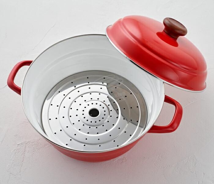 「ゆでる」「煮る」「蒸す」「揚げる」の万能ホーロー多機能鍋。卓上鍋としてもおすすめ