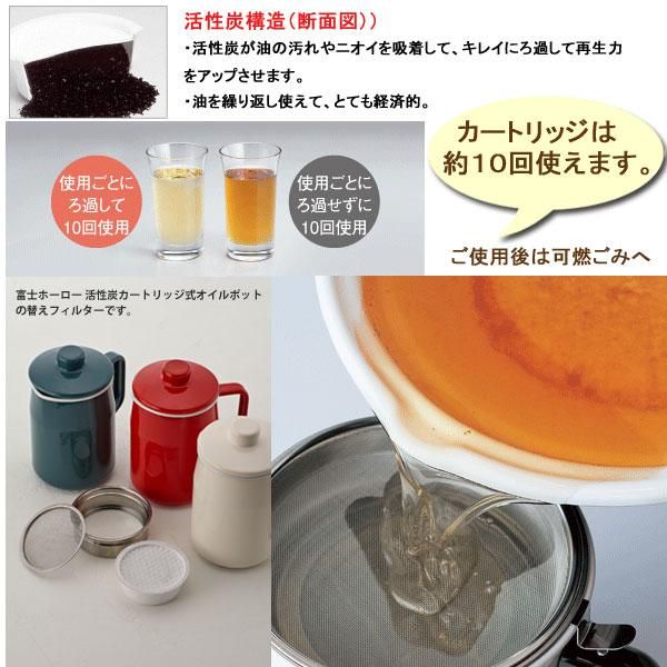 富士ホーロー オイルポット用 活性炭カートリッジ 3個入り OP-KT3 送料無料 当日出荷 分類で探す キッチングッズ キッチン小物 オイルポット ブランドで探す 富士ホーロー フィルト 特集ページ ホーロー製品特集 調理小物 価格帯(税込) 2,000円台の商品 キッチン 送料無料 ラッピング承ります 活性炭が油の汚れやニオイを吸着して キレイにろ過します 油を繰り返し使えて とても経済的 10000125 メーカー希望小売価格2,530円(税込) 2,200円(税込) 0円 選択項目在庫2,200円(税込)在庫なし取り寄せ2,200円(税込) 数量 カートに入れる 製品について性能詳細お買い物ガイドクロッカについて サイズ(約)(約)外径9 × 高さ3cm、底面7cm/1個 重量(約)33g/1個 材質活性炭、不織布 備考日本製 製造元富士ホーロー -ふじほうろうふじほーろーRERATED ITEMS関連商品富士ホーロー オイルポット 1.5L野田琺瑯 オイルポット ロカポ 活性炭カートリッジ付き