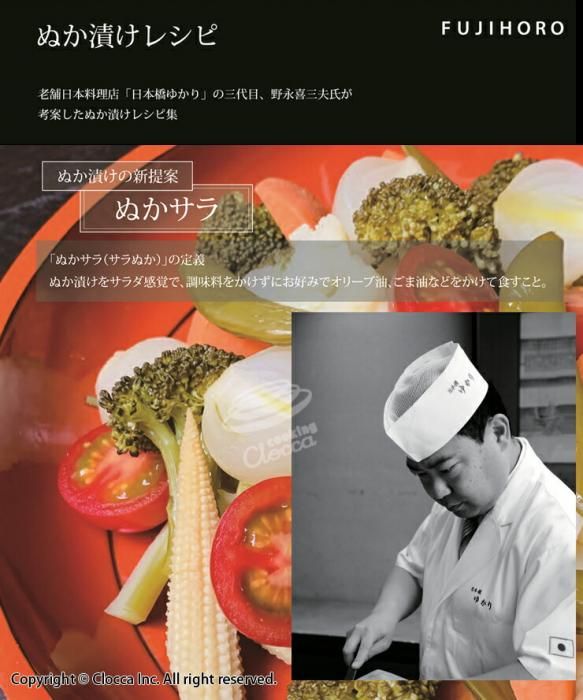 老舗の日本料理店「日本橋ゆかり」の三代目野永喜三夫氏が考案したぬか漬けレシピ集が付属しています。