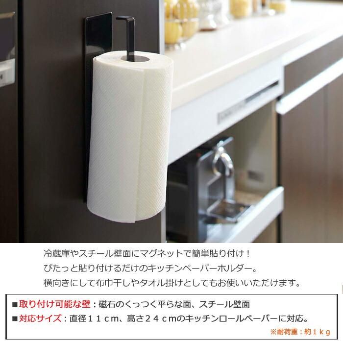 タワー マグネットキッチンペーパーホルダー 7127/7128 当日出荷 分類で探す キッチングッズ キッチン収納 ペーパーホルダー ブランドで探す 山崎実業 タワー tower 価格帯(税込) 1,000円台の商品 キッチン用品 送料無料 ラッピング承ります 使い易く キッチンに合わせやすいウォールキッチンシリーズ スチール壁面等にぴたっと貼り付けるだけのキッチンペーパーホルダー 横向きでも使用可能です10000940 1,320円(税込) 在庫入荷待ちホワイト1,320円(税込)在庫なし1,320円(税込)在庫なしブラック1,320円(税込)在庫なし1,320円(税込) 数量 カートに入れる 製品について性能詳細お買い物ガイドクロッカについてマグネットで簡単貼り付けできるキッチンペーパーホルダー 冷蔵庫横や扉、マグネットがつくキッチンパネルなどに貼り付けて設置するキッチンペーパーホルダーです。 縦向き、横向きのどちらでも使うことができ、横向き時は布巾やタオルも掛けられます。 冷蔵庫やキッチンパネルにマグネットで貼り付け!キッチン小物をすっきり整理できる、山崎実業のマグネット収納アイテム サイズ約W6 × D5.2 × H24.5cm 重量約300g 材質スチール(紛体塗装)、マグネット 耐荷重約1kg 対応サイズ直径11cm、高さ24cmのキッチンロールペーパー 取り付け可能な壁面磁石のくっつく平らな面、スチール壁面 生産国中国 ブランド 製造元tower -タワー 山崎実業RERATED ITEMS関連商品タワー キッチンペーパーホルダー 6781/6782カレ キッチンペーパーホルダー 7316トスカ キッチンペーパーホルダー 7819タワー マグネットボックスホルダー 2795/2796