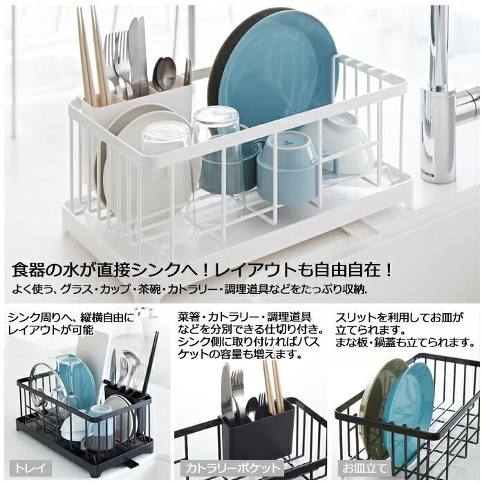 タワー 水切りワイヤーバスケット 2875/2876 送料無料 当日出荷 分類で探す キッチングッズ キッチン小物 シンクまわり 水切りカゴ・トレー ブランドで探す 山崎実業 タワー tower 価格帯(税込) 5,000円台の商品 キッチン用品 送料無料 ラッピング承ります 食器の水が直接シンクへ 水はけが好きな方向に動くのでレイアウトも自由自在 菜箸・カトラリー・調理道具などを分別できるカトラリーポケット付き 10001877 5,830円(税込) 0円 tower水切りワイヤーバスケットホワイト5,830円(税込)在庫なしブラック5,830円(税込)在庫なし SOLD OUT 製品について性能詳細お買い物ガイドクロッカについて 関連商品 キッチン収納グッズ一覧はこちらから カラーホワイト/ブラック材質「ワイヤーバスケット」スチール(ユニクロメッキ+粉体塗装)、「水切りトレイ・ポケット」ABS樹脂「水はけ」ポリプロピレン、「水止栓」シリコーンサイズ「W」約42 × 「D」23 × 「H」17cm重量約1,800g耐荷重約8kg耐熱温度-40℃ ? 90℃商品説明 食器の水が直接シンクへ流れる。水はけが好きな方向に動かせるのでシンク周りで縦横自由にレイアウトが可能です。 二層構造でお皿がたてやすく、置く面がフラットで食器がおきやすい構造。 スリットを利用してお皿が立てられます。まな板や鍋フタなども。 カトラリーポケットには、菜箸・カトラリー・調理道具などを分別できる仕切り付き。シンク側に取り付ければバスケットに置ける量も増えます。 水止栓が付いているので、排水できない場所でも使用可能です。製造 中国生産 商品説明 食器の水が直接シンクへ流れる。水はけが好きな方向に動かせるのでシンク周りで縦横自由にレイアウトが可能です。 二層構造でお皿がたてやすく、置く面がフラットで食器がおきやすい構造。 スリットを利用してお皿が立てられます。まな板や鍋フタなども。 カトラリーポケットには、菜箸・カトラリー・調理道具などを分別できる仕切り付き。シンク側に取り付ければバスケットに置ける量も増えます。 水止栓が付いているので、排水できない場所でも使用可能です。 材質「ワイヤーバスケット」スチール(ユニクロメッキ+粉体塗装)、「水切りトレイ・ポケット」ABS樹脂「水はけ」ポリプロピレン、「水止栓」シリコーン サイズ「W」約42 × 「D」23 × 「H」17cm 重量約1,800g 耐荷重約8kg 耐熱温度-40℃ ? 90℃ ブランド 製造元tower -タワー 山崎実業RERATED ITEMS関連商品