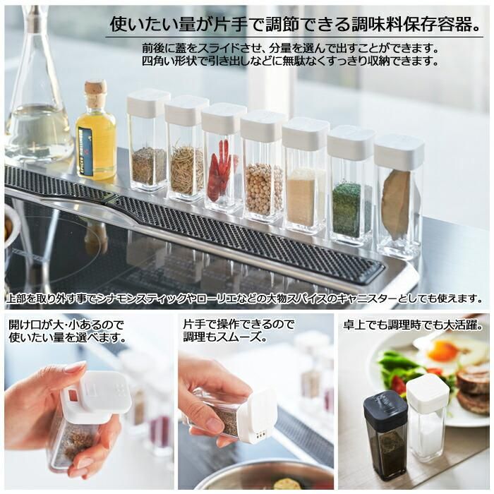 タワー スパイスボトル 2863/2864 当日出荷 分類で探す キッチングッズ キッチン小物 保存容器 調味料入れ ブランドで探す 山崎実業 タワー tower 価格帯(税込) 1,000円以下の商品 キッチン用品 送料無料 ラッピング承ります 開け口が大小あり前後に蓋をスライドさせ 分量を選んで出すことができます 四角い形状で引き出しなどに無駄なくすっきり収納できます 調理中も片手でスムーズ10001887 550円(税込) towerスパイスボトルホワイト550円(税込)ブラック550円(税込)ホワイト(取り寄せ)550円(税込)ブラック(取り寄せ)550円(税込) 数量 カートに入れる 製品について性能詳細お買い物ガイドクロッカについて使いたい量が片手で調節できる調味料保存容器 開け口が大小あり前後にフタをスライドさせ、分量を選んで出すことができます。四角い形状で引き出しなどに無駄なくすっきり収納できます。片手で操作できるので調理もスムーズ。卓上でも調理時でも大活躍。 サイズ約W3.7×D3.7×H9.5cm 容量約50ml 重量約52g 材質容器:アクリル樹脂、蓋上下:ポリエチレン 備考中国生産 ブランド 製造元tower -タワー 山崎実業RERATED ITEMS関連商品ひょうたん型七味入れ 料理人の道具 桜 星野工業タワー 調味料ストッカー S 350ml 2867/2868タワー 調味料ストッカー L 650mlバターケース 200g バターナイフ・カッティングガイド付きメロウ ソルト&ペッパータワー 調味料ストッカー 3個&ラックセット 3343/3344
