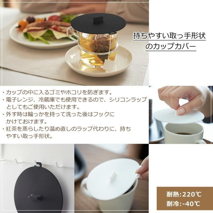 耐熱温度:220℃、耐冷温度:-40℃サイズ「W」約10.2 × 「D」11 × 「H」1.2cm重量約22g商品説明持ちやすい取っ手形状のカップカバー。カップの中に入るゴミやホコリを防ぎます。電子レンジ、冷蔵庫でも使用できるので、シリコンラップとしてもご使用いただけます。
