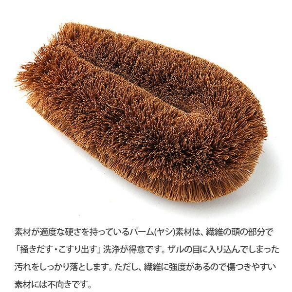 素材が適度な硬さを持っているパーム(ヤシ)素材は、繊維の頭の部分で「掻きだす・こすり出す」洗浄が得意です。