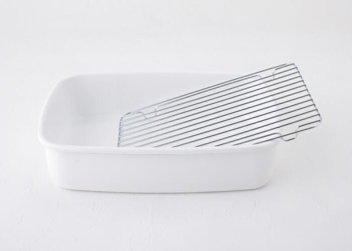 鋼板に白い釉薬をまとったホーローは熱に強く、冷凍食材を電子レンジを使わずに直火で温めたり、お菓子型としてオーブン調理も可能です。(電子レンジ使用不可)