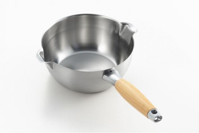 特長的な注ぎ口が付いた、丈夫でお手入れ簡単なステンレス製の雪平鍋