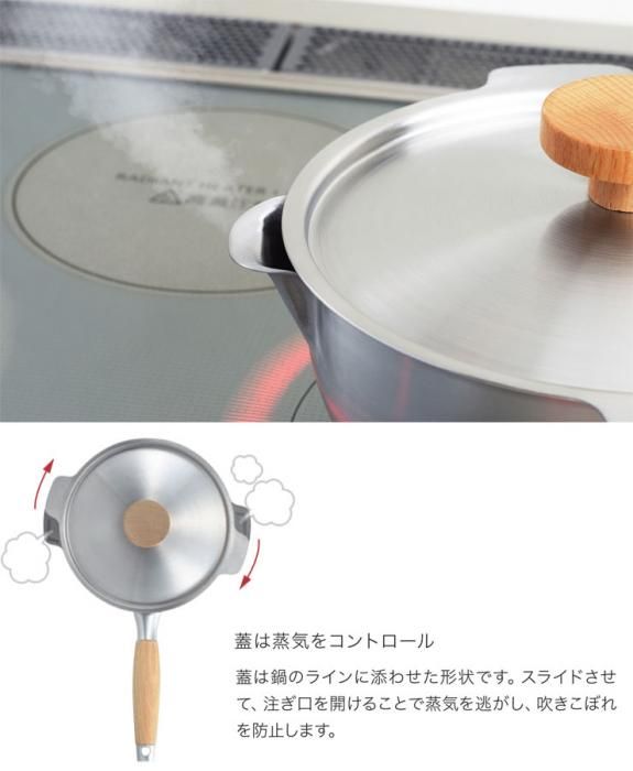 アイカタ 両口ステンレス 雪平鍋20cm用蓋 PD3008 当日出荷 分類で探す キッチングッズ 鍋 鍋ぶた ブランドで探す ヨシカワ アイカタaikata 価格帯(税込) 3,000円台の商品 キッチン用品 送料無料 ラッピング承ります 特長的な注ぎ口が付いたアイカタ雪平鍋20cm専用の蓋 鍋のラインに添わせた形状で スライドさせて 注ぎ口を開けることで蒸気を逃がし 吹きこぼれを防止しますaikata-pd3008 3,300円(税込) 数量 カートに入れる 製品について性能詳細お買い物ガイドクロッカについて 特長的な注ぎ口が付いたアイカタ雪平鍋20cm専用の蓋 アイカタ雪平鍋の専用蓋は、鍋のラインに添わせた形状で、スライドさせて、注ぎ口を開けることで蒸気を逃がし、吹きこぼれを防止します。ツマミの形状がフラットなので、置いたときに転がらず安定して置けます。 サイズ約幅208×全長245×高さ43mm 重量約300g 材質本体:18-0ステンレス(1.0mm)ツマミ:天然木 生産国日本(新潟県燕市) 備考電子レンジ、食洗機使用不可鍋本体は別売り ブランド 製造元aikata -アイカタ ヨシカワRERATED ITEMS関連商品アイカタ 両口ステンレス 雪平鍋20cm PD3007フィスラー 圧力鍋 ビタクイック プラス 4.5L 90-04-11-511貝印 o.e.c. minima 片手鍋 15cm DY5207アイカタ 両口ステンレス ミルクパン16cm PD3014アイカタ 両口ステンレス 雪平鍋18cm PD3001アイカタ 両口ステンレス 雪平鍋20cm PD3007
