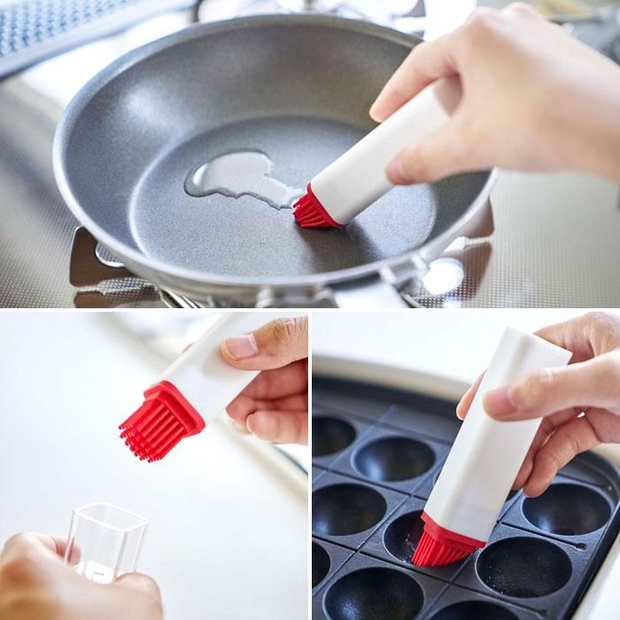 フライパンなどに入れた油をサッと伸ばすだけ、少量の油でまんべんなく塗ることができます。