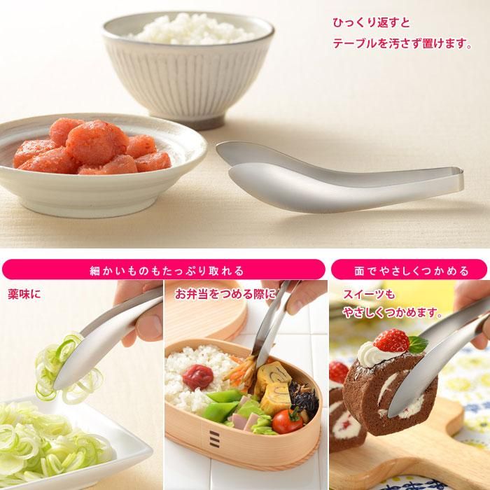 梅干しやらっきょうなどの「ごはんのおとも」にちょうどいい小さめサイズ。小鉢やビンからも取りやすく、たっぷりつかめる。特許取得のバネ構造でやわらかな使い心地です。
