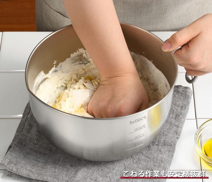 こねる作業も安定感抜群。手が痛くなりにくく、能率がアップ。