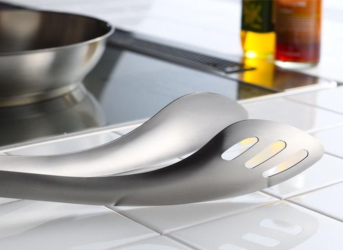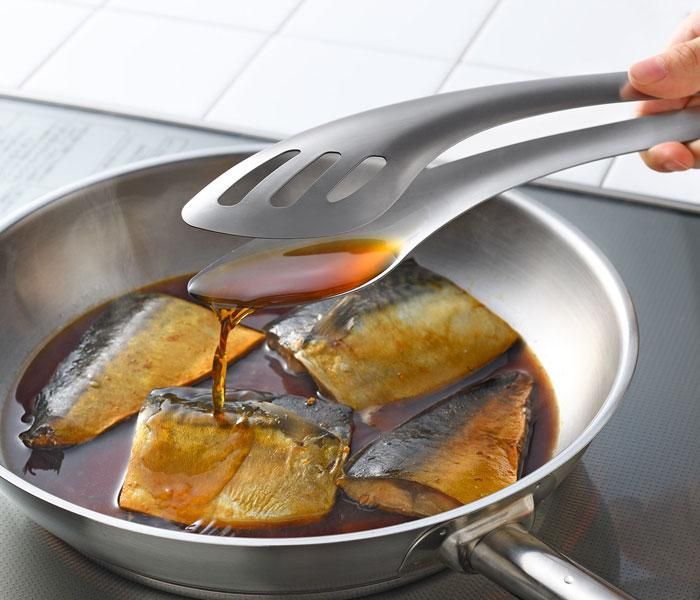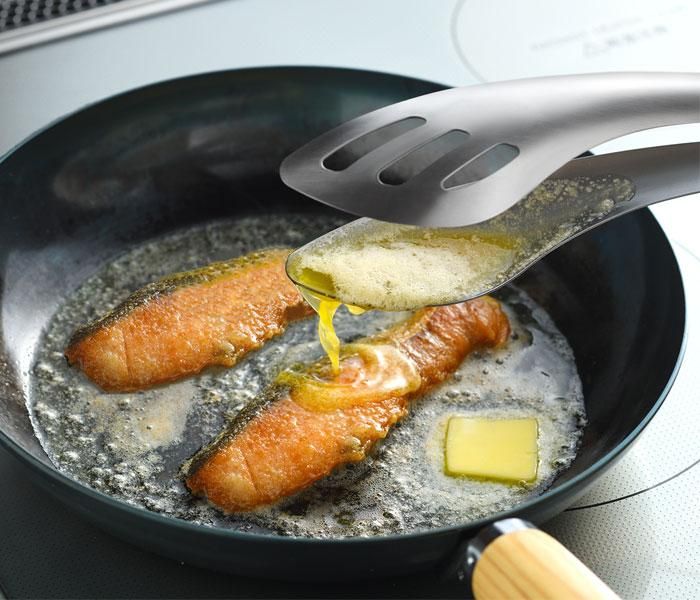 食材を包み込むようにつかみ、大振りな食材もしっかりつかめます。包み込むようにつかめる形状。しならないので大振りな食材や丸く滑りやすい食材もガッシリつかめます。