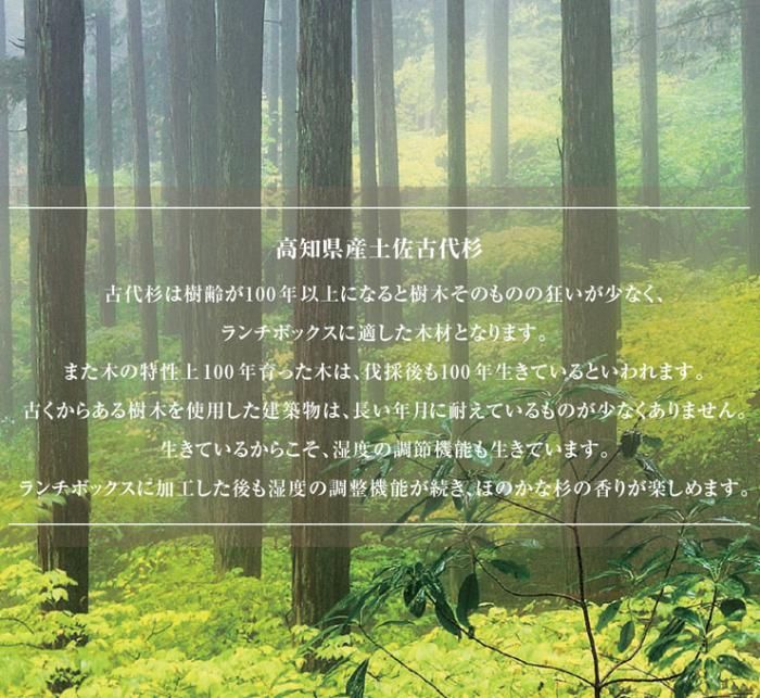 ベントーストア 木蓋のお弁当箱 古代杉 スリム L 400ml 送料無料 当日出荷 分類で探す キッチングッズ お弁当グッズ お弁当箱 ブランドで探す 三好製作所 ベントーストア BENTO STORE 価格帯(税込) 2,000円台の商品 キッチン 送料無料 ラッピング承ります 蓋に高知県の古代杉を使い 木の風合いが楽しめる贅沢なお弁当箱 本体は樹脂製で食洗機と電子レンジでお使いいただけます 取り外し可能な仕切り 中蓋 ゴムバンド付き bentostore-0601-0036-37-38 2,860円(税込) 0円 在庫入荷待ちホワイト2,860円(税込)在庫なし2,860円(税込)在庫なしベージュ2,860円(税込)在庫なし2,860円(税込)在庫なしチャコール2,860円(税込)在庫なし2,860円(税込)在庫なし SOLD OUT 製品について性能詳細お買い物ガイドクロッカについて 蓋に高知県の古代杉を使い、木の風合いが楽しめる贅沢なお弁当箱 高知県の古代杉を贅沢にも蓋に使ったお弁当箱です。蓋に自然木を使っているので、一つ一つ木目が異なり、本物の木ならではの楽しみ方があります。本体は樹脂でできているので、電子レンジと食洗機が使え、手間暇かけたお手入れは不要です。 古代杉は樹齢が100年以上になると樹木そのものの狂いが少なく、ランチボックスに適した木材となります。また木の特性上100年育った木は、伐採後も100年生きているといわれます。古くからある樹木を使用した建築物は、長い年月に耐えているものが少なくありません。天然木ならではの木目の違いをお楽しみいただけるランチボックスです。 材質本体,仕切り:ポリプロピレン(耐熱140℃、耐冷-20℃)フタ:木中ブタ:SEBS樹脂熱可塑性エラストマー(耐熱120℃、耐冷-60℃)ゴムバンド:レーヨン,ポリエステル,ラバー サイズW17.8×D5.6×H6.4cm 重量120g 容量400ml 生産国日本 備考 電子レンジ使用可(本体,仕切りのみ) 食洗機使用可(本体,仕切りのみ) BPAフリー RERATED ITEMS関連商品ジェルクールスクエア S 220ml 保冷剤一体型ランチボックス
