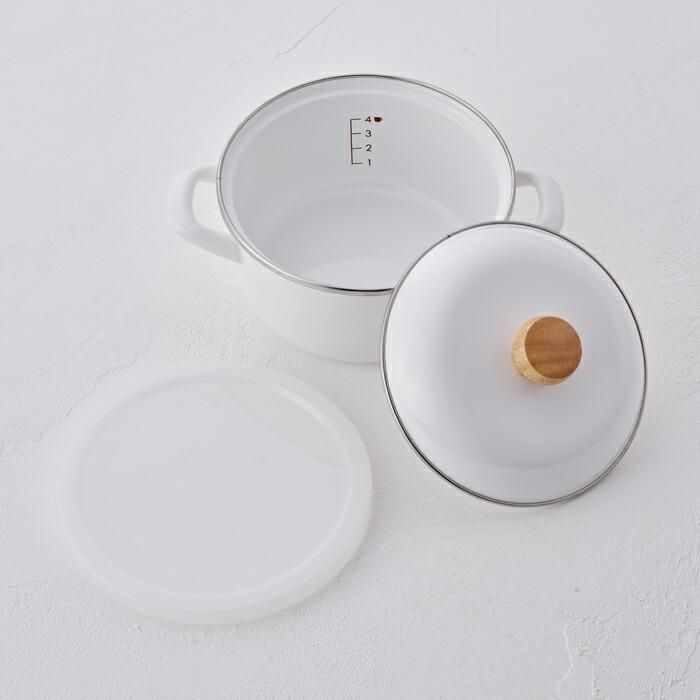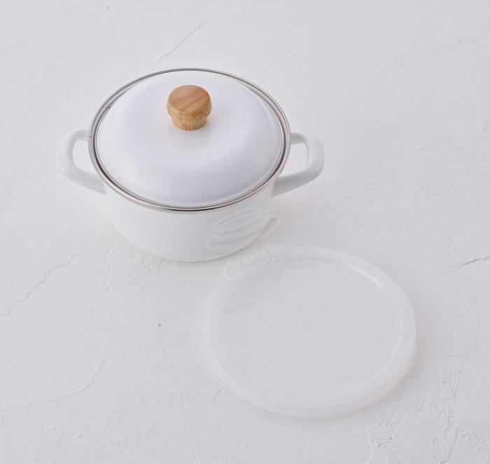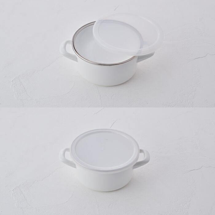 ホーローのフタを裏返して、ポリフタをつければコンパクトに収納できます。