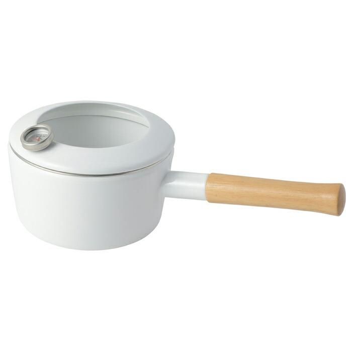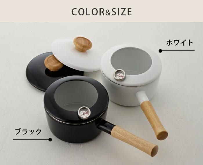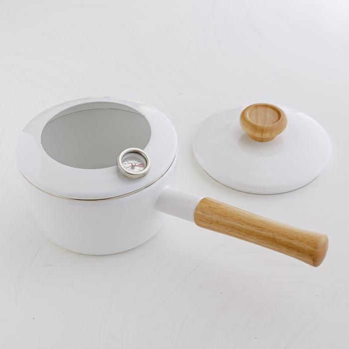 油はね防止フードと温度計、ホーロー蓋が付属しています。