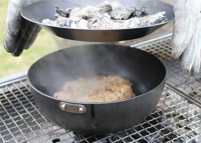 モーニング 21cmをフタとして使用すれば、軽量ダッチオーブンに早変わり!炭火でも使用でき、アウトドアで大活躍間違いナシのセットです。