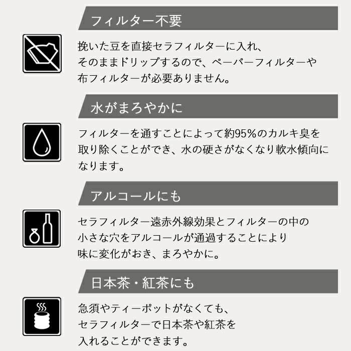 セラミックフィルターに注ぐだけで飲み物の味がまろやかに