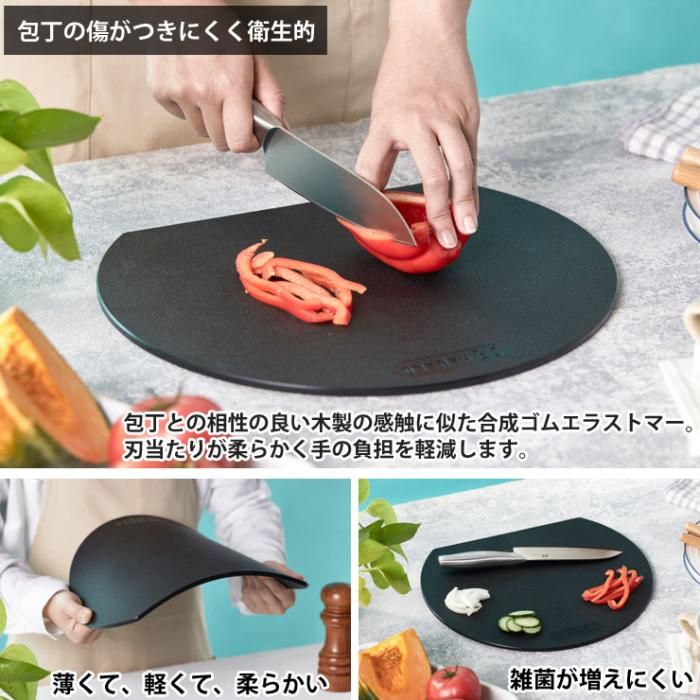 包丁との相性の良い木製の感触に似たエラストマーまな板。