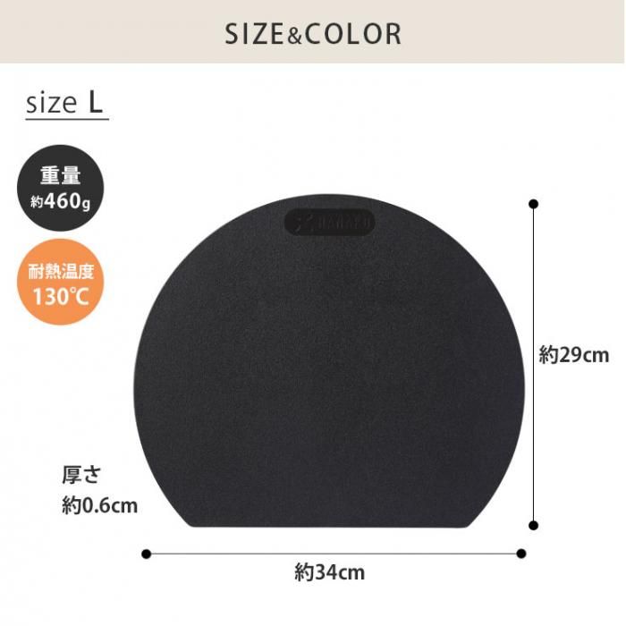 Dの形で奥行きがあり、調理がしやすく、まな板を立てかけても安定感があります。6mm厚のため、適度な重みがあり、調理中も滑らず使えます。