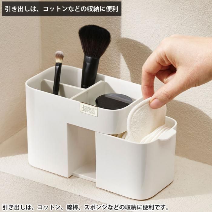 ジョセフジョセフ ビバ 引き出し付きコスメオーガナイザー コンパクト 75003 送料無料 当日出荷 分類で探す インテリアグッズ 収納 インテリア雑貨 メイク用品 ブランドで探す ジョセフジョセフ 価格帯(税込) 1,000円台の商品 リビング用品 送料無料 ラッピング承ります 散らかりがちなメイク道具を簡単に整理収納できるコンパクトサイズのコスメオーガナイザーです 仕切り付きの引き出しは コットン 綿棒 スポンジなどの収納に便利です jj-75003 メーカー希望小売価格2,200円(税込) 1,870円(税込) 0円 在庫入荷待ちシェル1,870円(税込)在庫なし1,870円(税込)在庫なし SOLD OUT 製品について性能詳細お買い物ガイドクロッカについて 実用的でスタイリッシュな引き出し付きコスメオーガナイザー 散らかりがちなメイク道具を簡単に整理収納できるコスメオーガナイザーです。 トップ部分が浅いポケットと深いポケットに分かれているので、ブラシやマスカラとアイシャドウなど、化粧品をサイズごとに分けて入れられます。 仕切り付きの引き出しは、コットン、綿棒、スポンジなどの収納に便利。磁気クロージャー付きでしっかり閉まります。 トップには浅いポケットと深いポケット コットンや綿棒の収納に便利な仕切り付きの引き出し 磁気クロージャー付きの引き出し 仕切りは取り外し出来てお手入れも簡単 ジョセフジョセフのコスメオーガナイザーシリーズはサイズがバラバラで収納するのが難しいコスメもすっきり片付けられます。インテリアにマッチしやすい美しいソフトシェルカラーです。毎日使うアイテムをおしゃれに使いやすく収納できます。 サイズ約17x9.7x12cm 重量約320g 材質ボディ: ABS樹脂,マグネット 備考イギリスデザイン 中国生産 ブランドJosephJoseph -ジョセフジョセフRERATED ITEMS関連商品トスカ タブレット&リモコンラック 2344トスカ スタンドミラー&トレイ 2314トスカ アクセサリーハンガー 2310トスカ アクセサリースタンドトスカ サングラス&アクセサリーハンガー 2514リン フローリングワイパースタンド 3178/3179リン ペン&リモコンラック 2731/2732