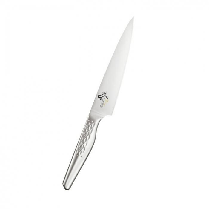 KAI独自の設計により、ハンドル内部まで刀身を通すことでハンドルと刀身のバランスの良さ、抜群の耐久性を実現させました。食器洗浄機にも対応しておりますので、常に衛生的にご使用いただくことができます。食材への切断抵抗を小さくする独自の研削加工により、食材への切り込みの良さと鋭い切れ味を有しています。