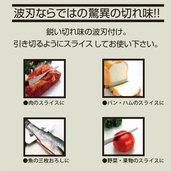 ウェーブカット 150mm AC-0061 メール便 送料無料 分類で探す キッチングッズ 包丁 パン切り包丁 ブランドで探す 貝印 価格帯(税込) 1,000円台の商品 キッチン用品 送料無料 ラッピング承ります 鋭い切れ味の波刃付け 引き切るようにスライスしてお使いください 肉のスライス 魚の三枚おろし パン・ハムのスライス 野菜・果物のスライスなどにkai-000ac0061 1,540円(税込)0円 会員価格: 1,386円(税込) 10%off 数量 カートに入れる 製品について性能詳細お買い物ガイドクロッカについて波刃ならではの驚異の切れ味。 鋭い切れ味の波刃付け。引き切るようにスライスしてお使いください。肉のスライス、魚の三枚おろし、パン・ハムのスライス、野菜・果物のスライスなどに。 波刃加工のナイフです。切れ味を回復させる場合、別売りの「波刃が研げるシャープナー」をご利用ください。 サイズ約26.7×2×2.5cm 重量約110g 材質刀身:ステンレス刃物鋼(刃付け形状/波刃付け)柄:ポリプロピレン(耐熱温度110℃) 生産国日本 備考食器洗浄機、食器乾燥機対応 ブランド貝印RERATED ITEMS関連商品貝印 波刃が研げるシャープナー AP0163関孫六 匠創 ペティナイフ 120mm AB5163関孫六 匠創 ペティナイフ 150mm AB5161関孫六 匠創 小三徳 145mm AB5162関孫六 匠創 三徳包丁 165mm AB5156関孫六 匠創 シェフナイフ 180mm AB5158関孫六 匠創 シェフナイフ 210mm AB5159関孫六 匠創 シェフナイフ 240mm AB5160関孫六 匠創 パン切り包丁 240mm AB5164関孫六 匠創 ディンプル 三徳包丁 165mm AB5157