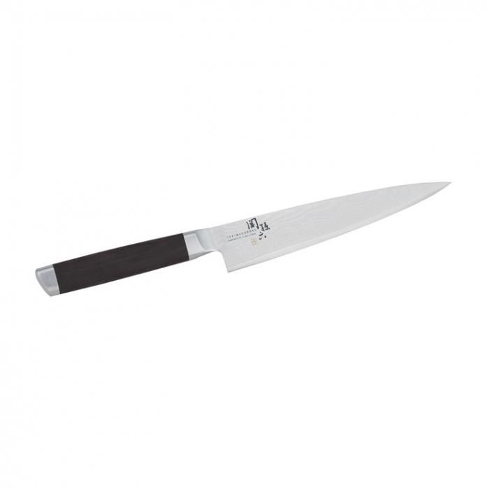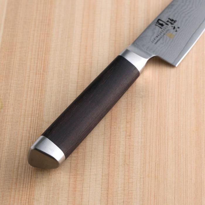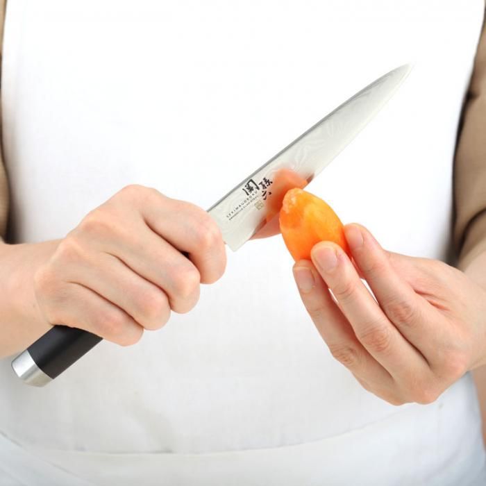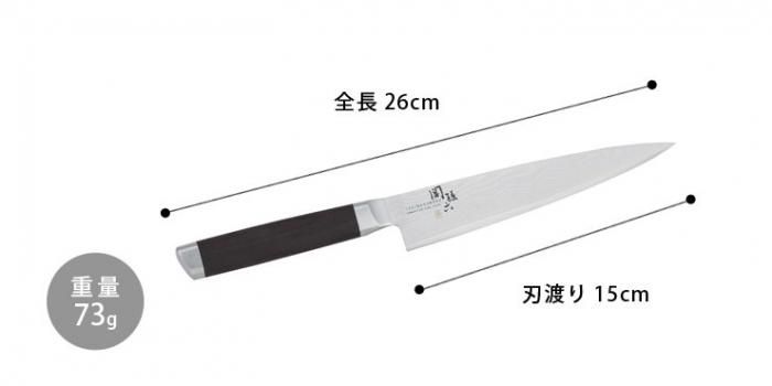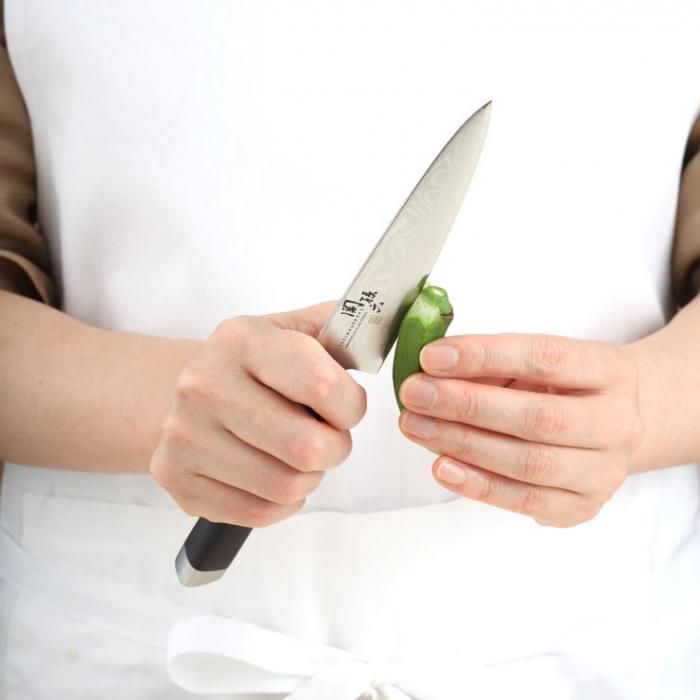 プロのニーズにも応えられる、ジャパンデザインの高級ライン!!刃体表面は、日本刀を彷彿とさせる美しいダマスカス模様が広がり、ハンドルには手に程よくフィットする逆三角形のシェイプ。切れ味、使い心地、デザイン性という機能美を追求しました。