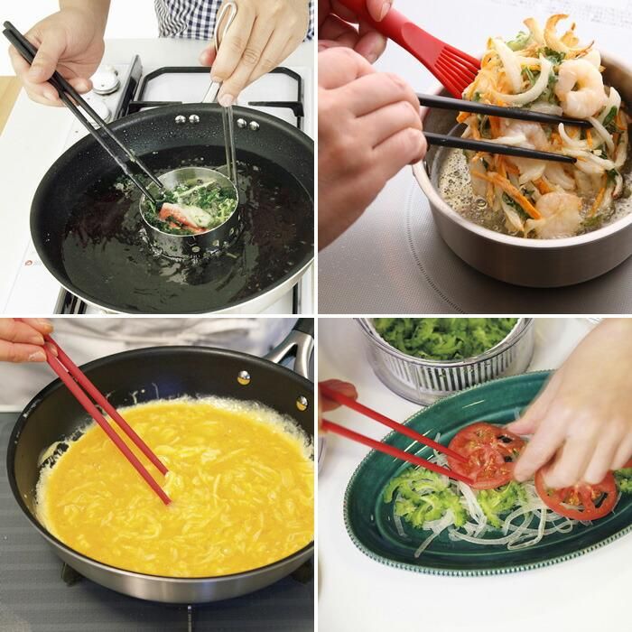 豊かな弾力があり、加熱調理でも溶けたりしない、シリコーン製の菜箸です。