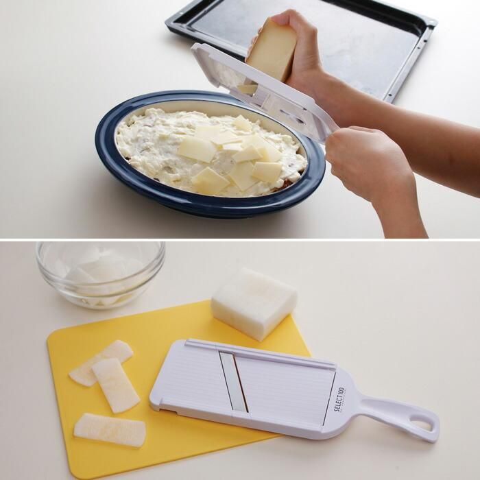 また、刃が斜めについているので食材に刃が入りやすく、軽い力でスライスできます。