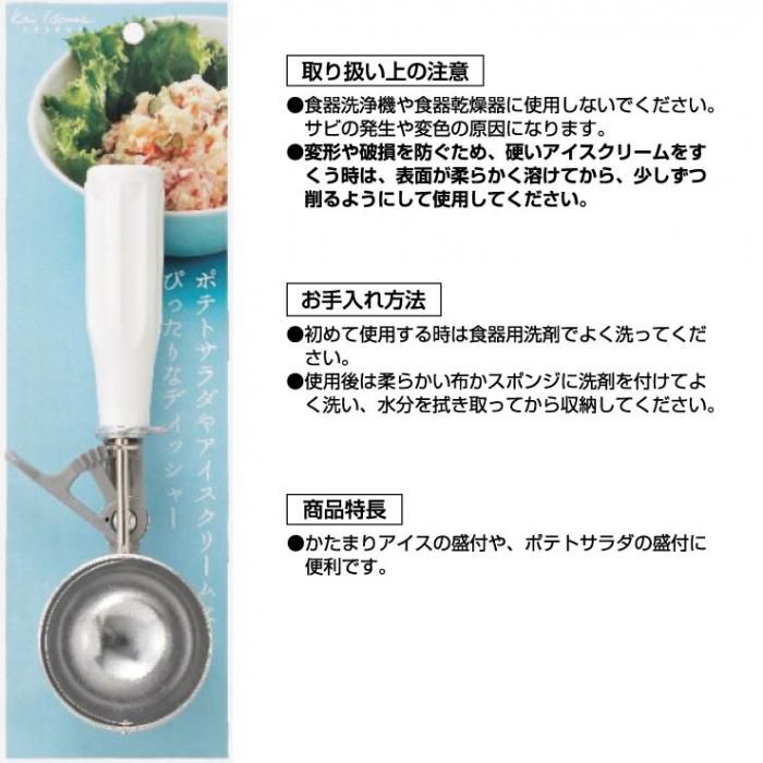 カイハウスセレクト ディッシャー DH7093 当日出荷 分類で探す キッチングッズ キッチン小物 調理ツール その他調理ツール ブランドで探す 貝印 KHS カイハウスセレクト 価格帯(税込) 1,000円以下の商品 キッチン用品 送料無料 ラッピング承ります アイスクリームやポテトサラダなどの盛り付けに便利なディッシャーです お味噌などの調味料やお菓子の生地など 一定量をすくいたい時にも便利kai-000dh7093 770円(税込) 会員価格: 693円(税込) 10%off SOLD OUT 製品について性能詳細お買い物ガイドクロッカについて毎日の暮らしを支える身近なキッチンウェアのKai House SELECT。お客さまとのコミュニケーションから生まれた毎日の心地よい暮らしのための道具です。アイスクリームやポテトサラダなどの盛り付けに便利なディッシャーです。 サイズ200×62×35mm 重量72g 満水容量約60ml 材質本体:アルミニウム合金柄部:ポリプロピレン(耐熱温度110度)レバー(ギア)部:ポリアセタール(耐熱温度140度) 生産国台湾 備考サビの発生や変色の原因になる為、食器洗浄機や食器乾燥機に使用しないでください。 ブランド 製造元CASUAL PRODUCT カジュアルプロダクト -青芳 あおよし