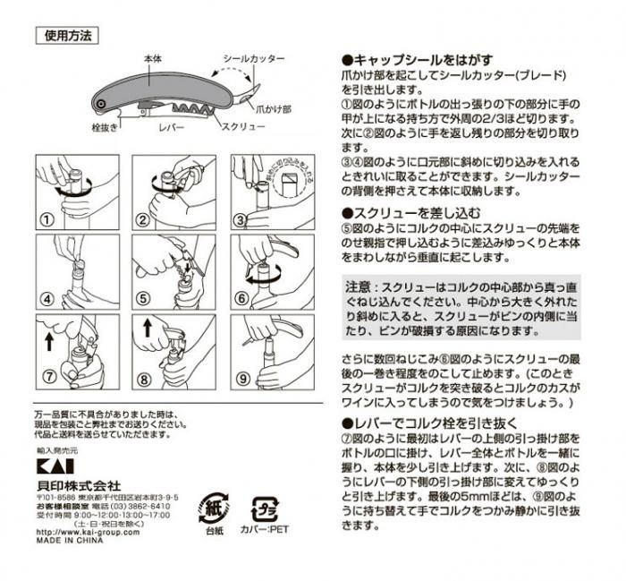 カイハウスセレクト コルクスクリュー(ソムリエ) DH7258 メール便 送料無料 当日出荷 分類で探す キッチングッズ キッチン小物 調理ツール キッチン小道具 その他キッチン小道具 ブランドで探す 貝印 KHS カイハウスセレクト 価格帯(税込) 1,000円台の商品 キッチン用品 送料無料 ラッピング承ります ワインをもっとオシャレに楽しもう!コルクが引き抜きやすい構造の 本格的なソムリエナイフkai-000dh7258 1,100円(税込)0円 会員価格: 990円(税込) 10%off SOLD OUT 製品について性能詳細お買い物ガイドクロッカについて毎日の暮らしを支える身近なキッチンウェアのKai House SELECT。お客さまとのコミュニケーションから生まれた毎日の心地よい暮らしのための道具です。ワインをもっとオシャレに楽しもう!コルクが引き抜きやすい構造の、本格的なソムリエナイフ。 サイズ113×36×18mm 重量98g 材質本体:ABS樹脂(耐熱温度80℃)スクリュー部:鉄(シリコーン樹脂塗装加工)金属部:亜鉛合金レバー・シールカッター:ステンレススチール 生産国中国 ブランド 製造元CASUAL PRODUCT カジュアルプロダクト -青芳 あおよしRERATED ITEMS関連商品コフレヴィーノ ポッシュ ソムリエナイフ ステンレス フォイルカッター・コークスクリュー・栓抜き・プチナイフ・拡大鏡コフレヴィーノ グラス ソムリエナイフ ワインリング ポアラーウチクック おろしスプーン UCS6ウチクック マッシャーフォーク UCS8LEYE 野菜をうつわに ベジココスプーン LS1529 AUX