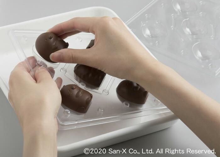 8)チョコレートが固まったら型(前面)を外し、軽くひねってから型(背面)を少し押してチョコレートを取り出す。
