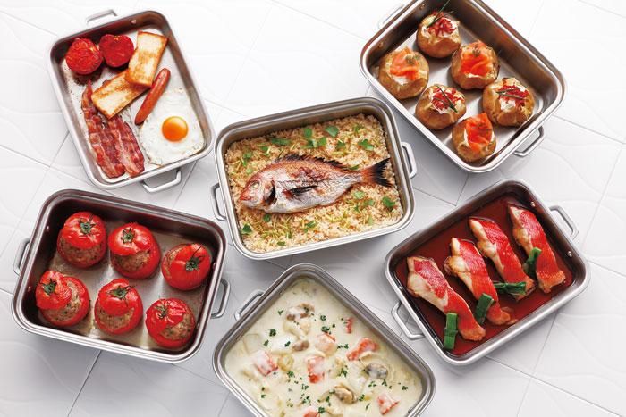 スチーム料理やオーブン料理、無水調理など、1台で幅広いレシピに対応できるお鍋のセットです。