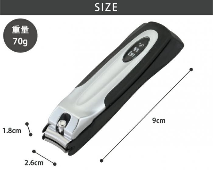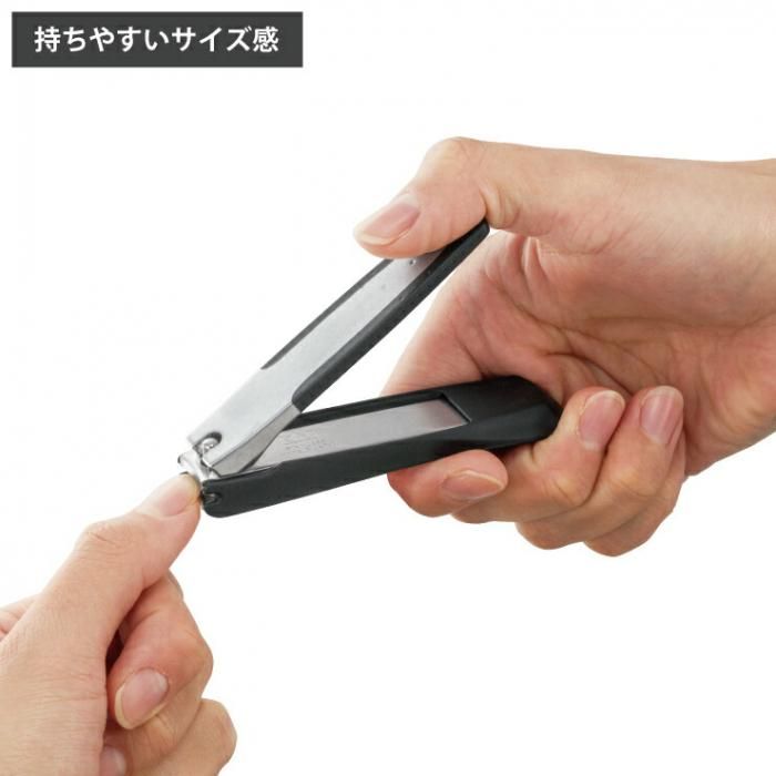 ツメが切りやすい側面Uカットのストッパーケース付き。サイドにU字溝ツメヤスリが付いています。