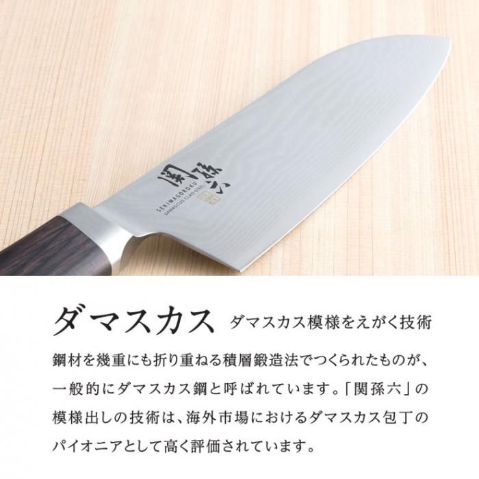 刀鍛冶の誇りが息づく、ダマスカス模様が特徴の「関孫六」の上位シリーズ。
