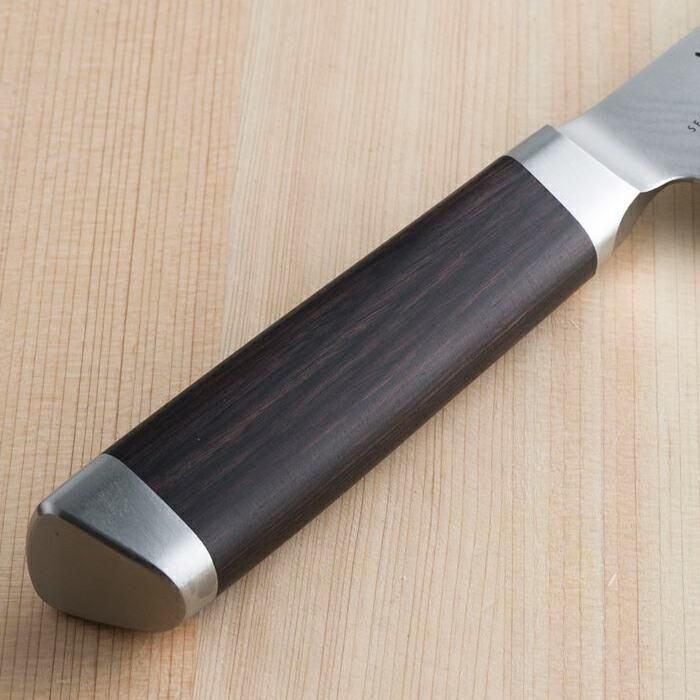 強度に優れた積層強化木のハンドルを、ステンレスの口金・尻金で美しく強化しています。