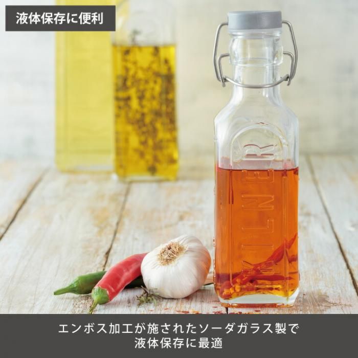 液体保存に便利なクリップトップ式ソーダガラス製保存瓶