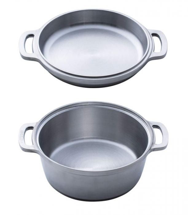 本体・フタとも、熱伝導性がよく耐久性に優れた厚手アルミニウム鋳物製で、無水調理はもちろん、1鍋で8通りの調理法が楽しめる多機能鍋です。