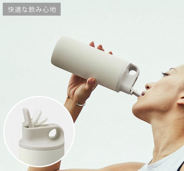 スポーツをしながらでもさっと飲めるよう、動きながらでも開け閉めしやすいスパウトタイプの飲み口は、丸みがあってやさしい口当たりで快適な飲み心地です。