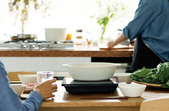 デザイン性のある卓上調理器にもすっきりと馴染み、従来の「鍋物」のイメージをスタイリッシュなものに変えてくれます。
