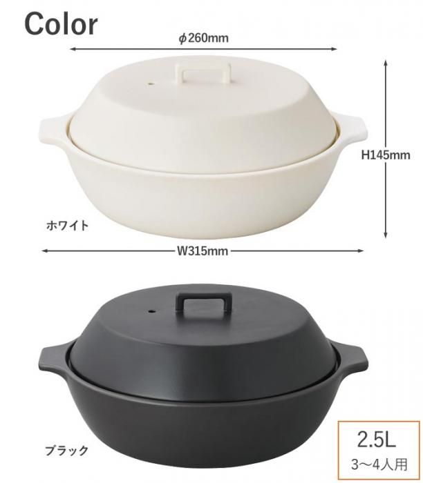 白い色でも汚れが目立ちにくく、カビなどの心配も要らず、従来の土鍋で必要だった使い始めの「目止め(お米のとぎ汁で土鍋の細かい穴やヒビをふさぐこと)」も必要ありませんので、すぐに使い始めることが出来ます。