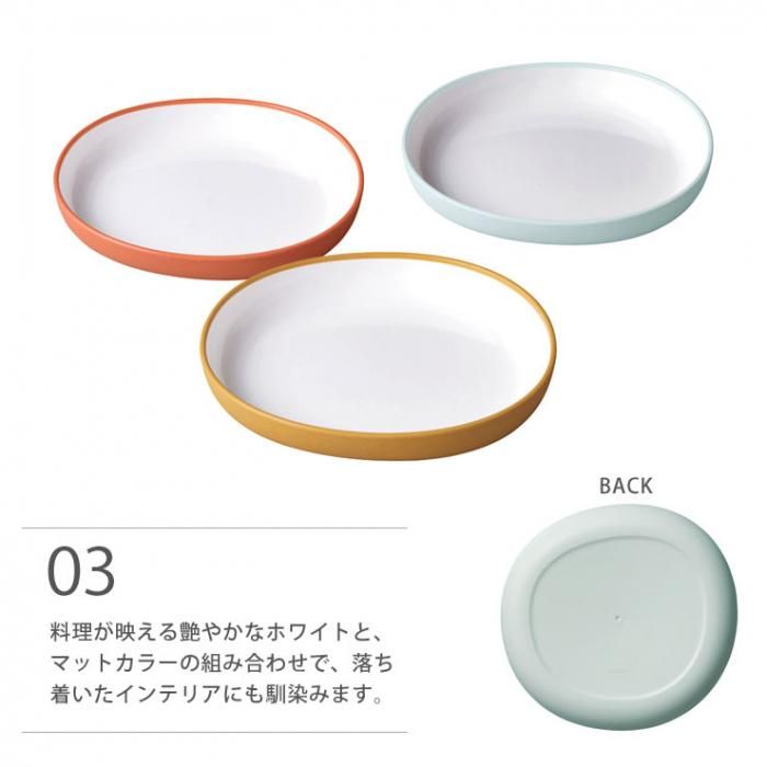 食器の内側は料理が映える艶やかなホワイト、外側はマットな質感を持つカラーの組み合わせで、落ち着いたインテリアにも馴染みます。