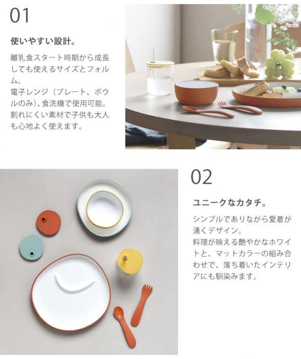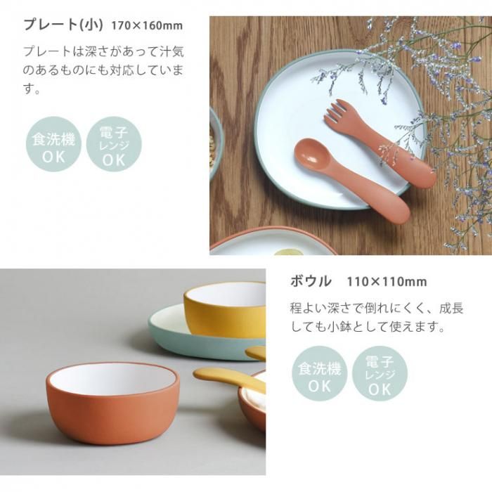 電子レンジ(プレート、ボウルのみ)、食洗機で使用可能。割れにくい素材で子供も大人も心地よく使えます。