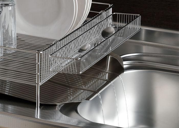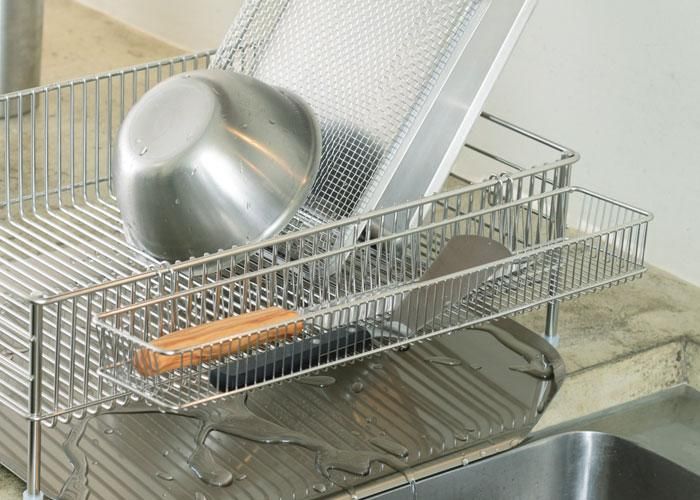 食器の出し入れをしやすくするために、かごが浅めに設計されています。お料理しながら洗い物をしたり。洗ったものを、またすぐ使ったり、水切りの出番は意外と多いものです。