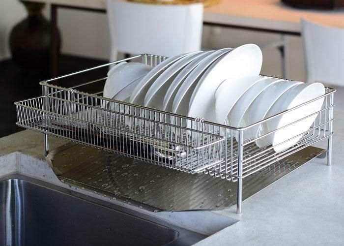 食器を入れる水切りかごは、いつも清潔であってほしい。ラバーゼの水切りは、汚れがたまらず清潔に保てるよう、ワイヤーの溶接部分を無くしました。水キレもよく、お手入れもサッと拭くだけでカンタンです。