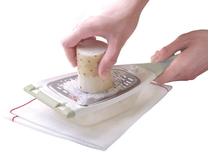 大根おろし以外にも、長いも・玉ねぎ・りんご・しょうが・チーズなど、様々な食材のすりおろしに使用できます。