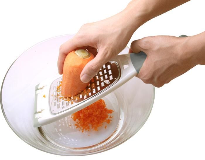 握りやすく安心して作業が出来るエラストマーグリップ+角型トレイで快適に大根おろしをおろせます。