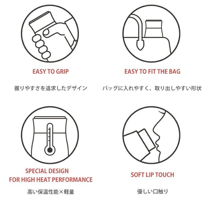 フォトジェニックで女性の手でも握りやすいデザインと軽さを実現したタンブラーです。真空二重構造で高い保温・保冷性能を持っています。