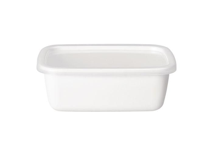 野田琺瑯のホワイトシリーズ レクタングル深型は、長方形の容器にシールタイプのフタが付いた琺瑯の保存容器。シンプルだから使い勝手が良く、琺瑯の光沢や白さが美しく表れています。