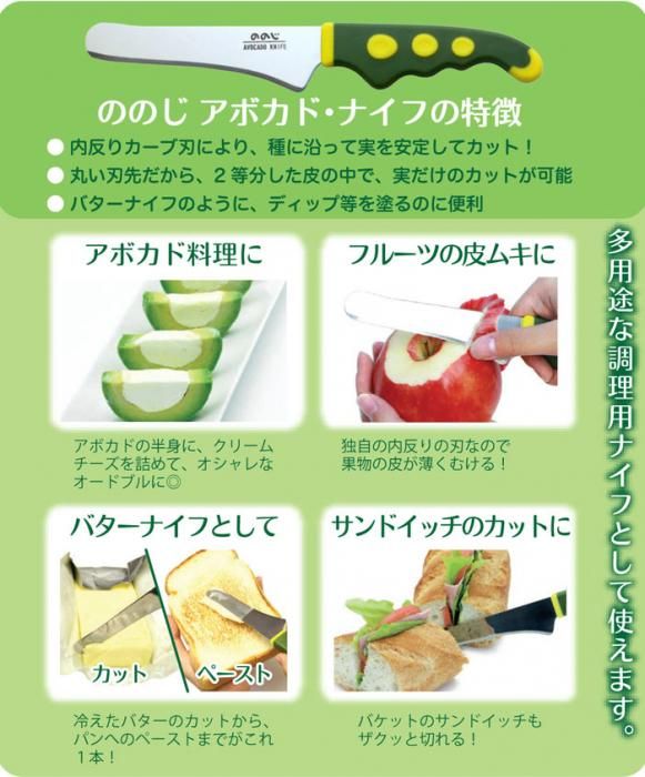 特徴的な刃のカーブがアボカドの丸みに絶妙にフィットし、カットできる「アボカド・ナイフ」。